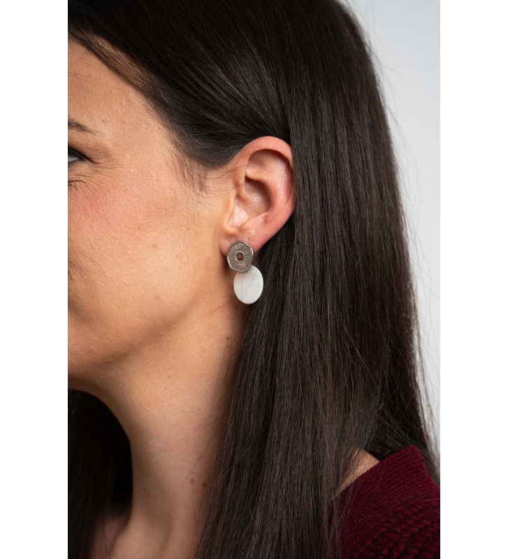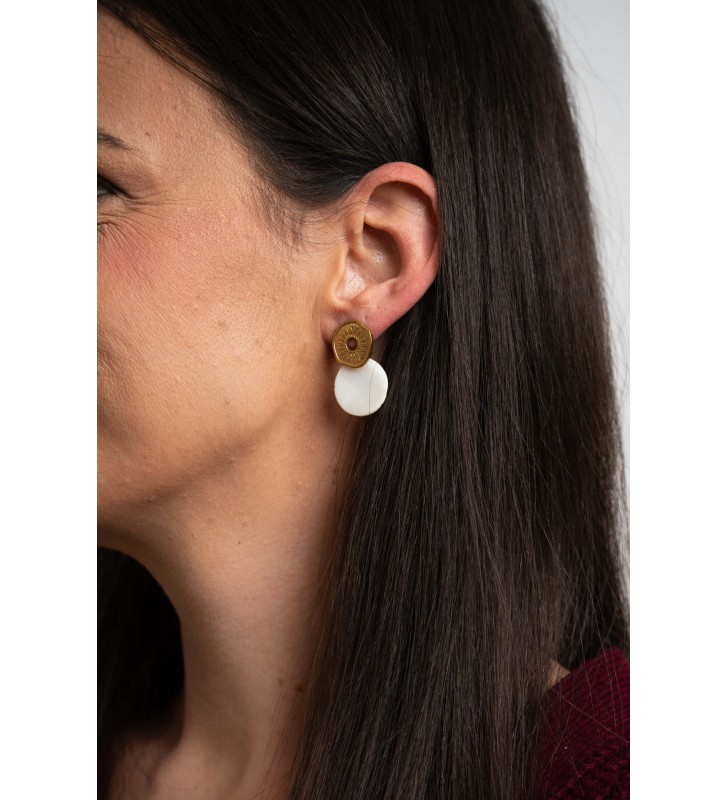 Naušnice Aurelia stvorene su za žene koje cijene dizajn i ljepotu ručnoga rada. Gornji dio krase teksturirani detalji koji podsjećaju na sunčeve zrake, dok donji dio dodaje profinjenost svakom pokretu. Pristaju uz svaki stil – od dnevnih kombinacija do večernjih izlazaka, a dostupne su u zlatnoj i srebrnoj varijanti.